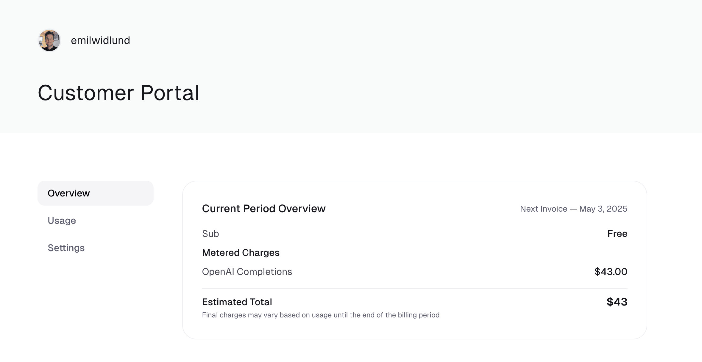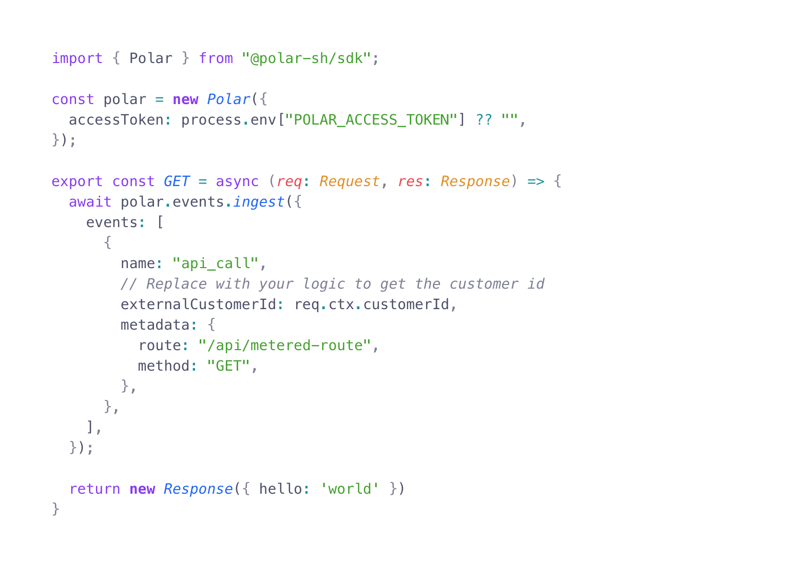 Now you’re ready to ingest events from your application. Sending events which match the meter’s filter will increment the meter’s usage for the customer.