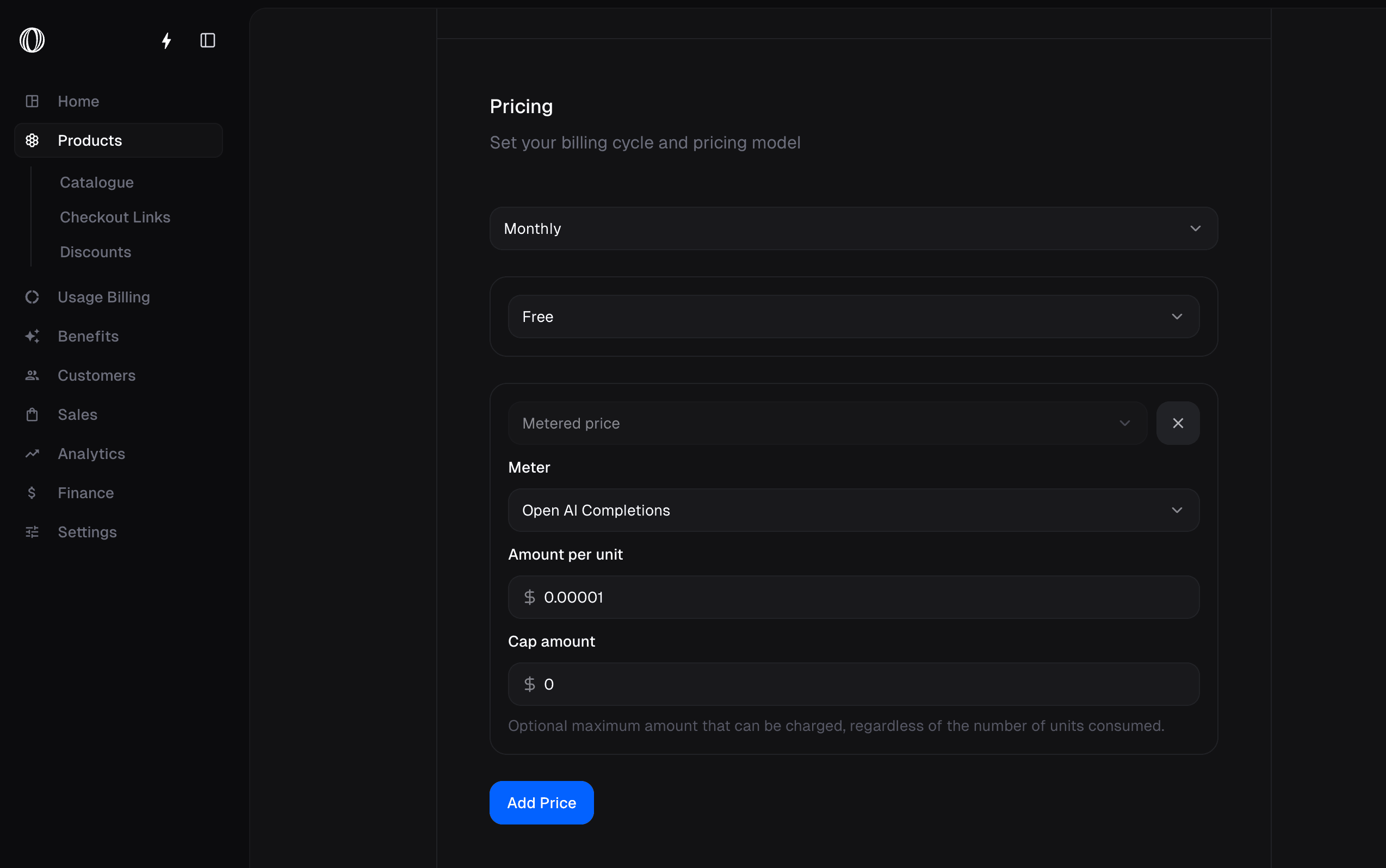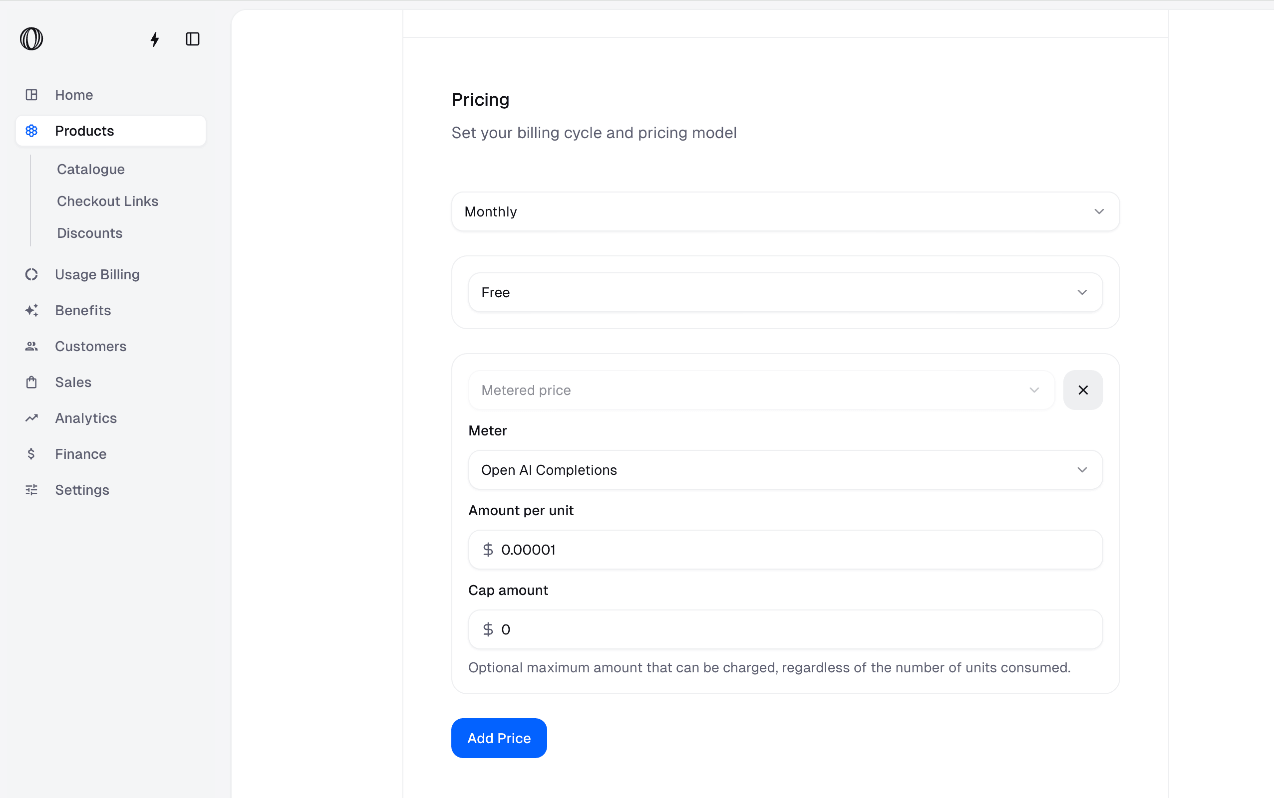 Add metered price to a Product