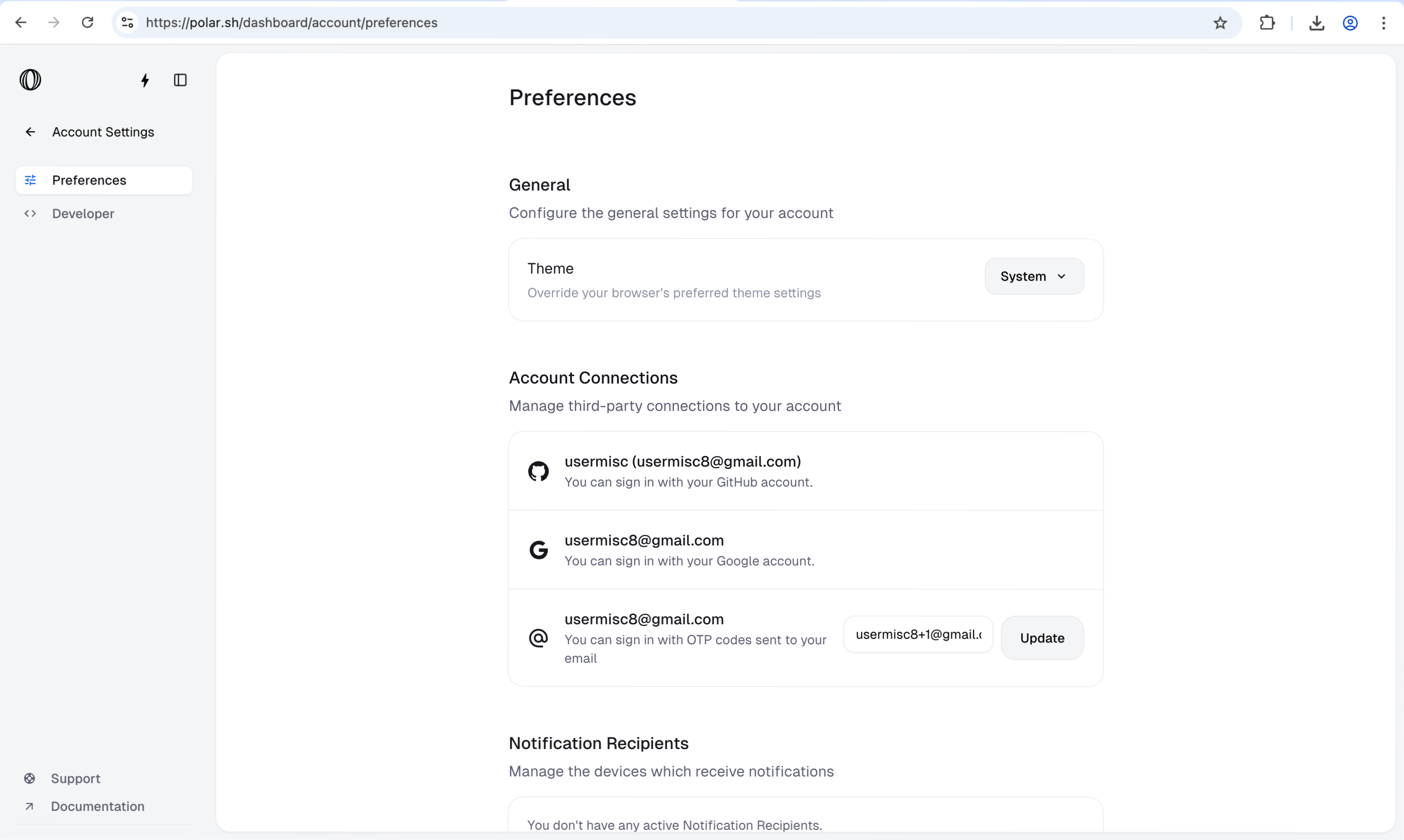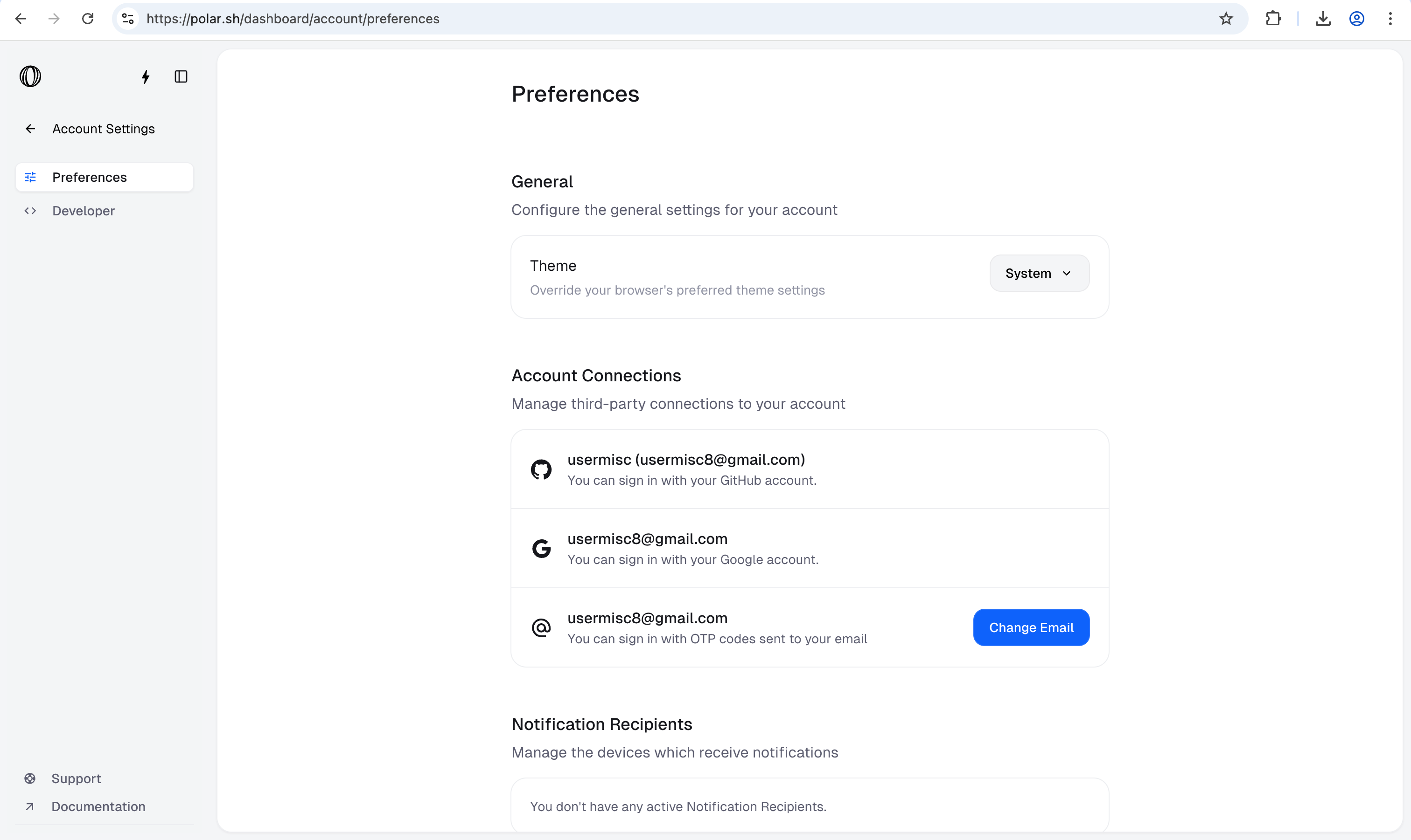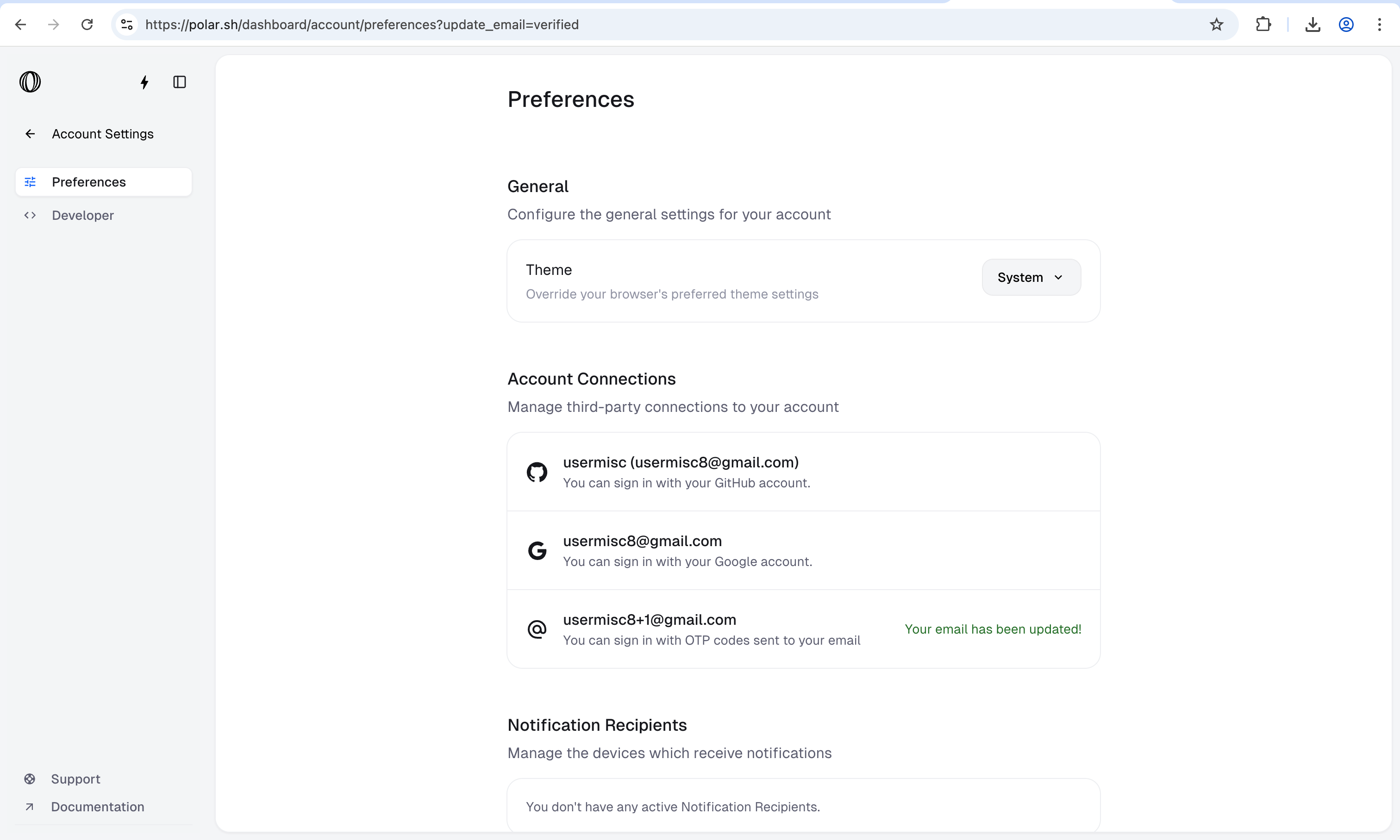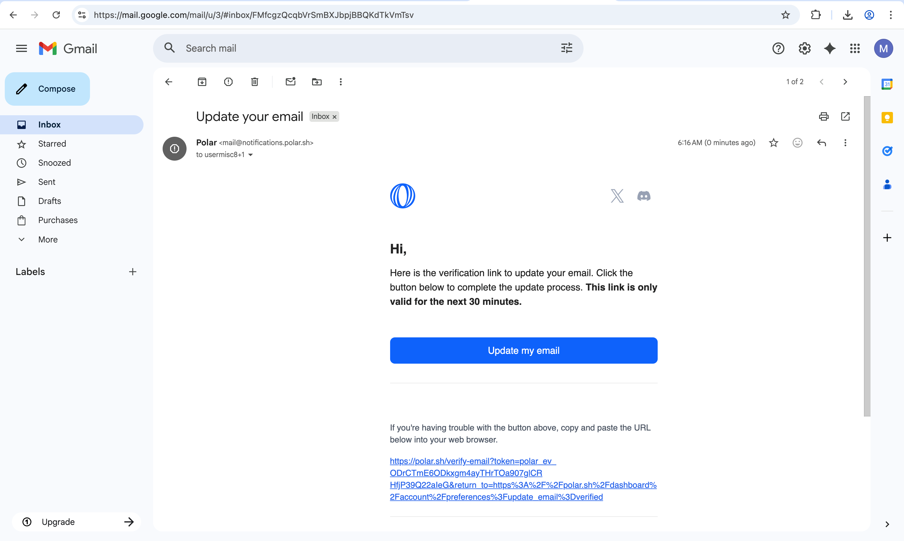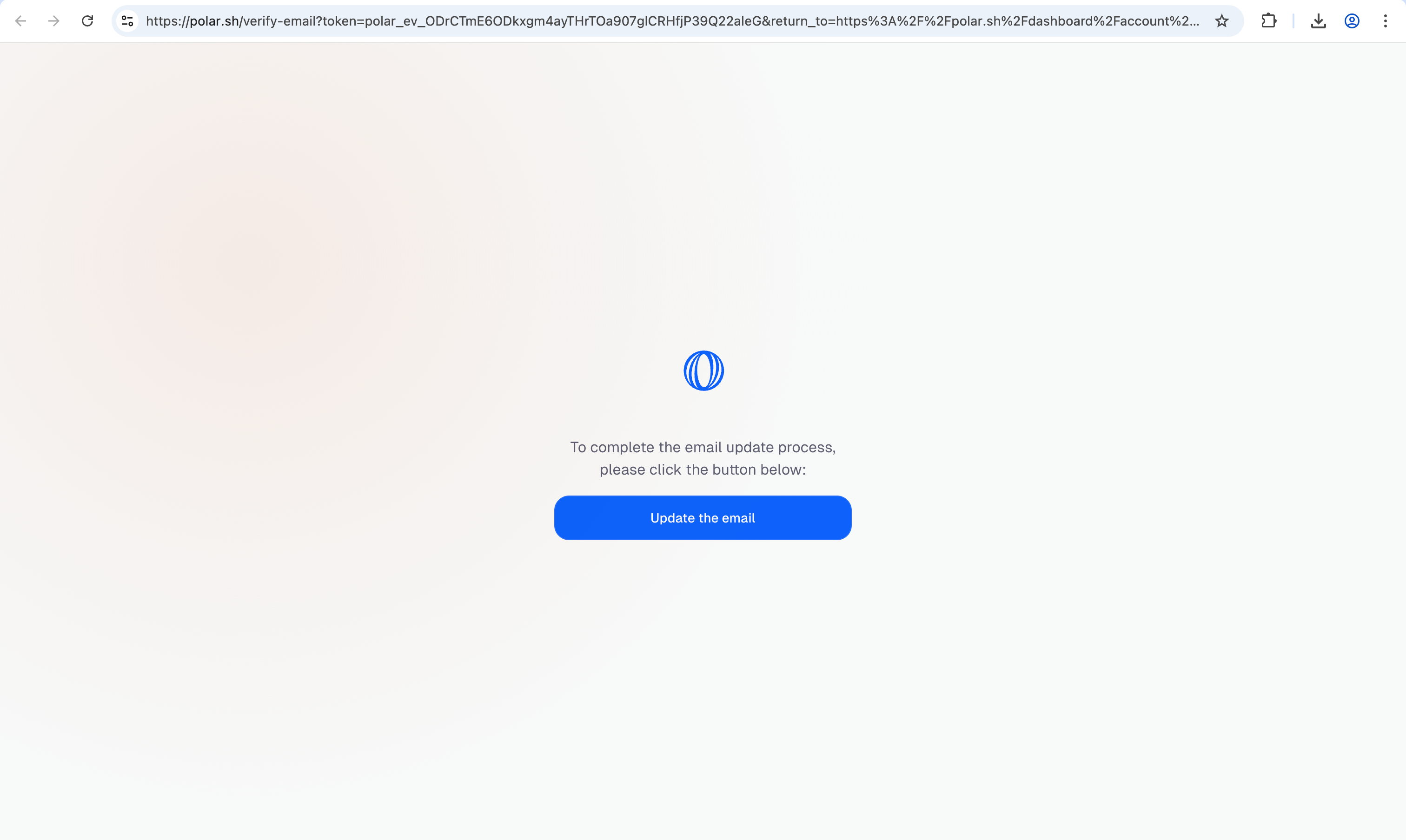 Polar would send an email to the new email that is entered in the previous step. Click the