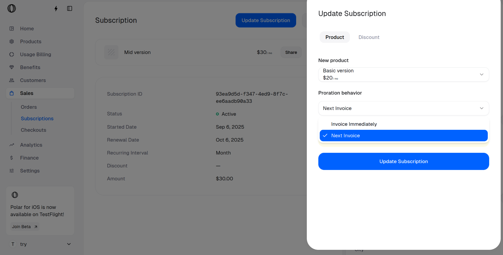 - Invoice immediately: The customer is charged (or credited) right away for the difference.