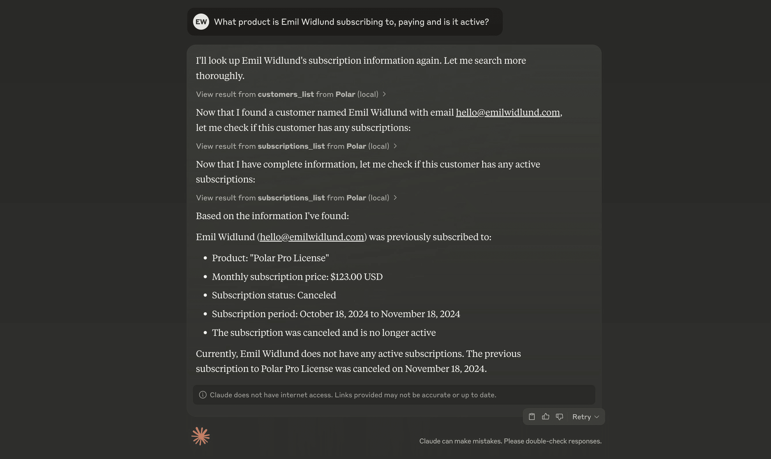 You need a MCP-capable agent environment to use Polar over MCP. A few of them are Claude Desktop and Cursor.Connecting to Polar MCP